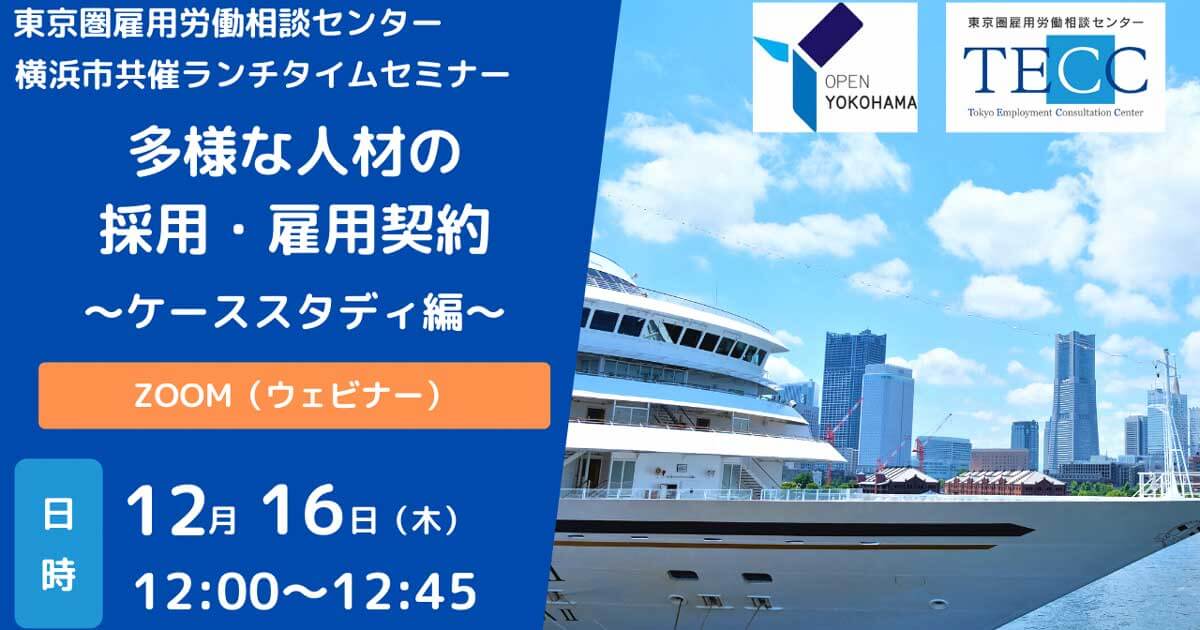 【12/16】横浜市共催ランチタイムセミナー 多様な人材の採用・雇用契約~ケーススタディ編 …