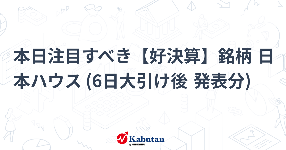 - 本日注目すべき【好決算】銘柄 日本ハウス (6日大引け後 発表分) - 株探 - かぶたん
