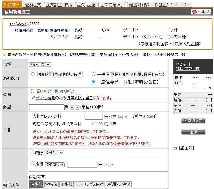 - 主要ネット証券初!デイトレ信用プレミアム料入札(オークション)方式を導入! ※1※2