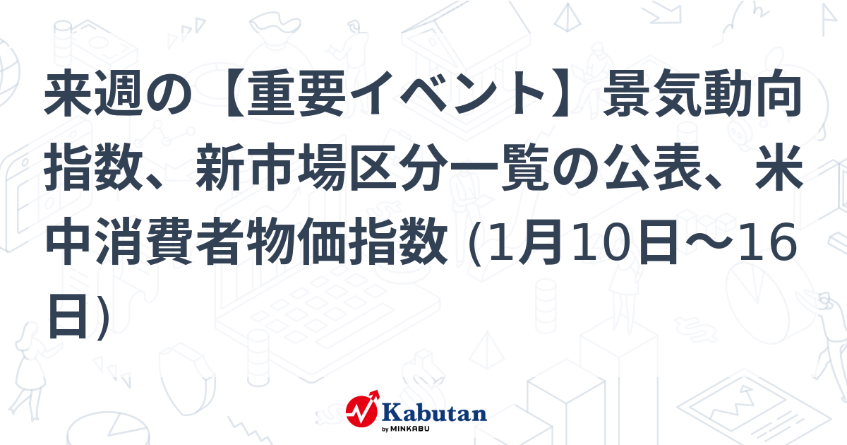 - 来週の【重要イベント】景気動向指数、新市場区分一覧の公表、米中消費者物価指数 (1月10日 ...