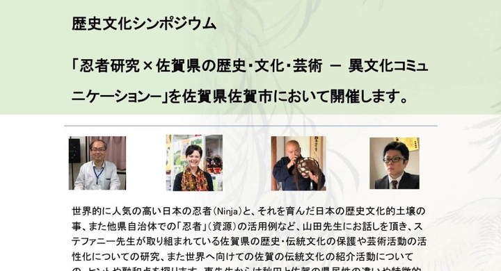 ★歴史文化シンポジウム「忍者研究×佐賀県の歴史・文化・芸術 — 異文化コミュニケーション—」を佐賀県佐賀市において開催します。