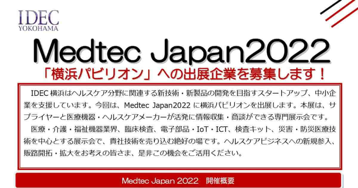 - 【締切1/31】Medtec Japan 2022「横浜パビリオン」への出展企業を募集します!