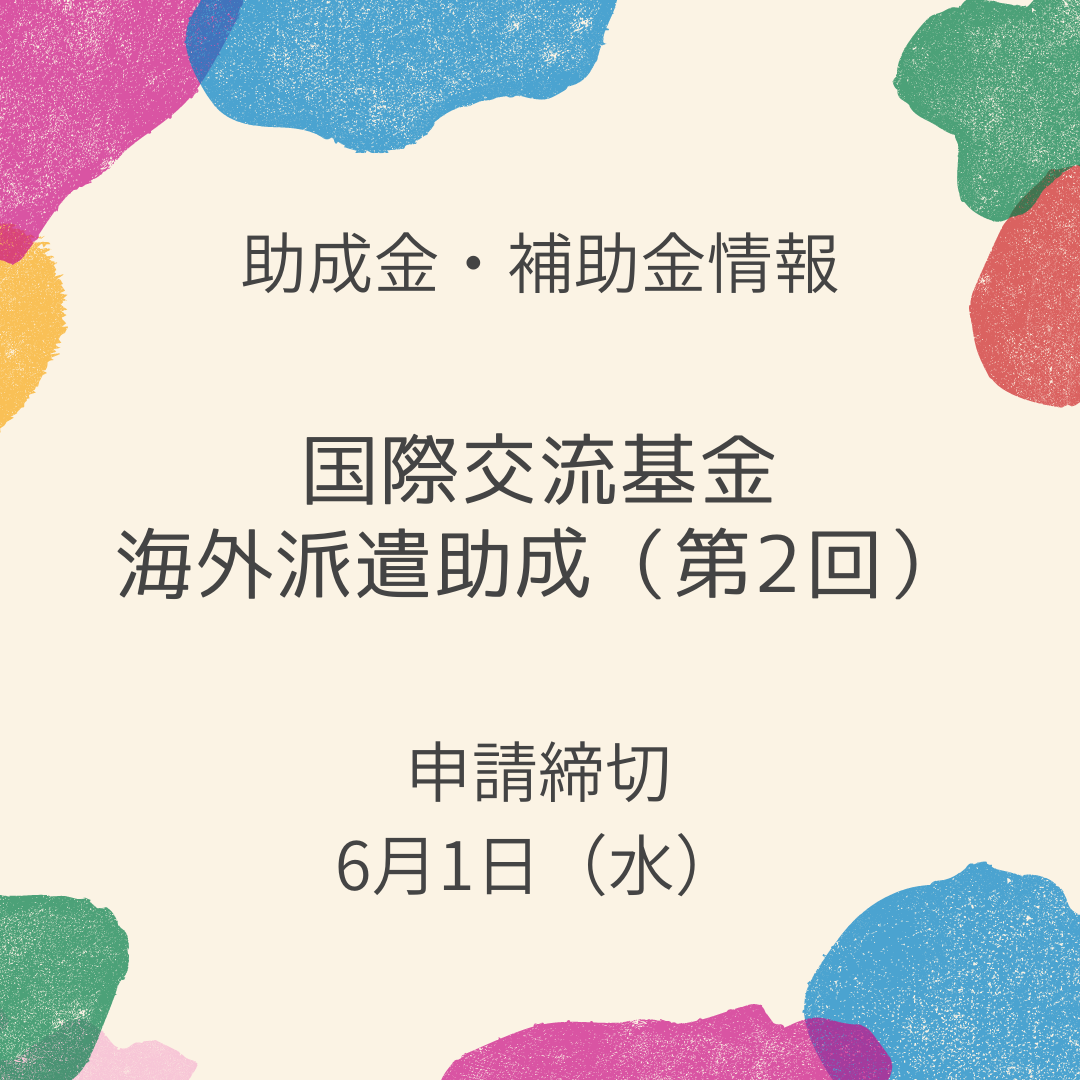 HOME · 助成金・補助金 · 国際交流基金「海外派遣助成(第2回)」の募集について …