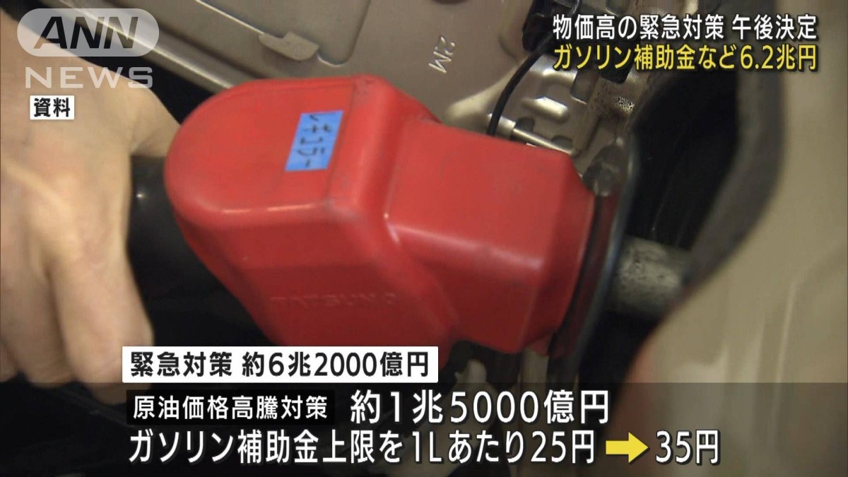19. 物価高の緊急対策決定へ ガソリン補助金など6.2兆円規模|テレ朝news-テレビ朝日のニュースサイト