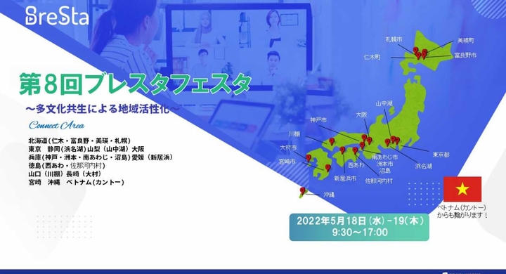 株式会社ブレインワークスのプレスリリース(2022年5月20日 19時)。「第8回ブレスタフェスタ ~多文化共生による地域活性化フェスタ~」テーマ『地方を知る・地方とつながる』をブレイン・ナビオンで公開開始しました。<株式会社ブレインワークス 近藤 昇/村山 紗也香氏/鎌田 佳秋/増田 耕太/ど素人ホテル再建/チャントスルー 中嶋 雄士氏/NPO法人Entrance To Awaji 武政 彰吾氏/ネットゴー商事 チャン・ミー・リン氏/ギタリスト 高谷 秀司氏/牧アイティ研究...