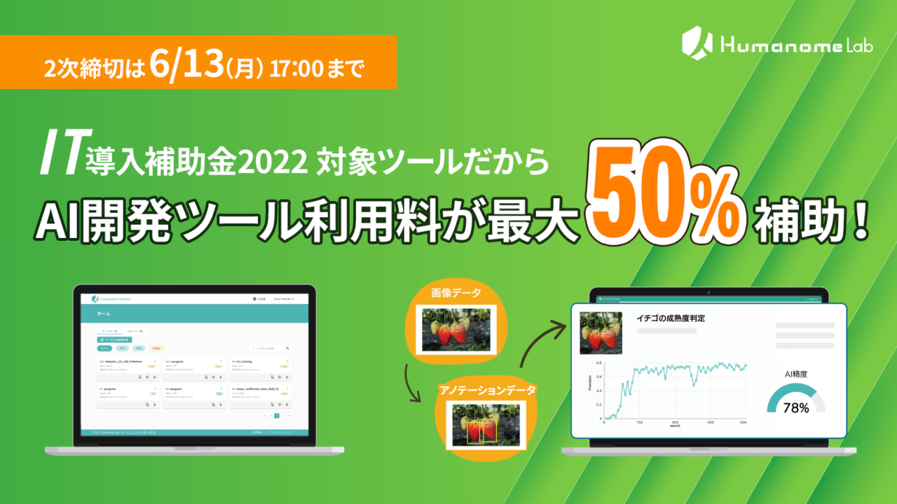 当社が開発するノーコードAI開発ツール「Humanome CatData」と「Humanome Eyes」が、「IT導入補助金2022」の補助対象ツールに認定されました。