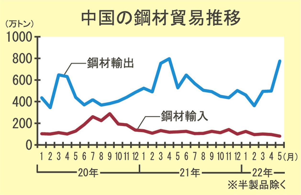 - 中国の鋼材輸出/5月、776万トンへ急増/都市封鎖で内需低迷、13カ月ぶり高水準 - 鉄鋼新聞