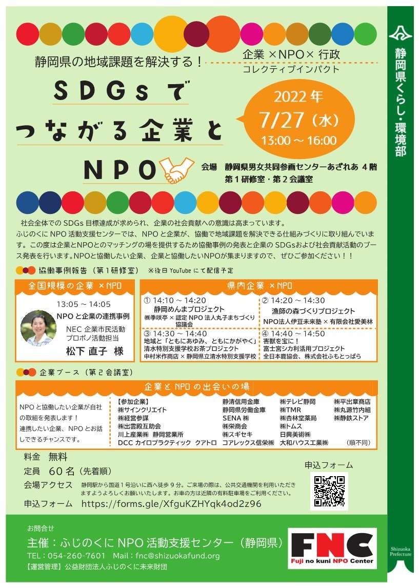 静岡県のプレスリリース(2022年6月13日 14時00分)【参加者募集】SDGsでつながる企業とNPO