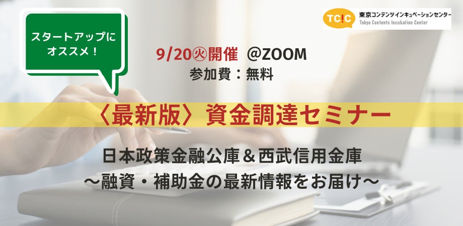 - 起業家が知っておきたい融資・補助金の最新情報を学べる資金調達セミナーを9月20日(火)