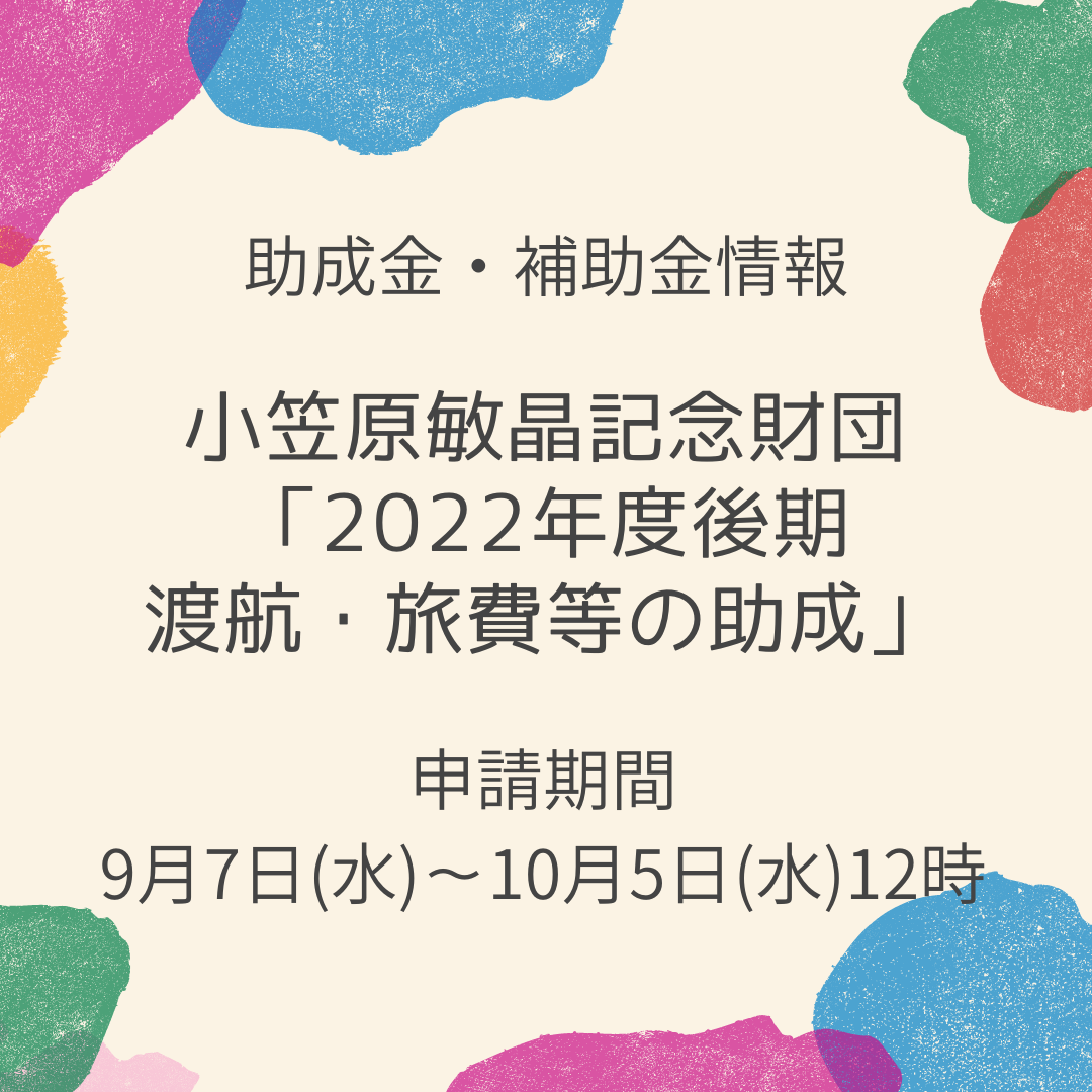 - 小笠原敏晶記念財団「2022年度後期 渡航・旅費等の助成」の募集について