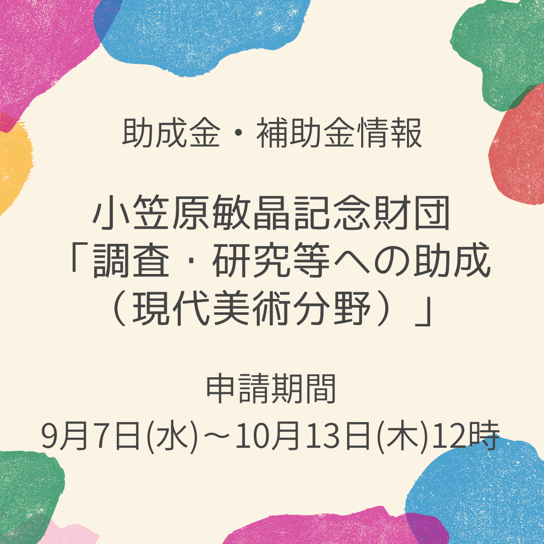 - 小笠原敏晶記念財団「調査・研究等への助成(現代美術分野)」の募集について