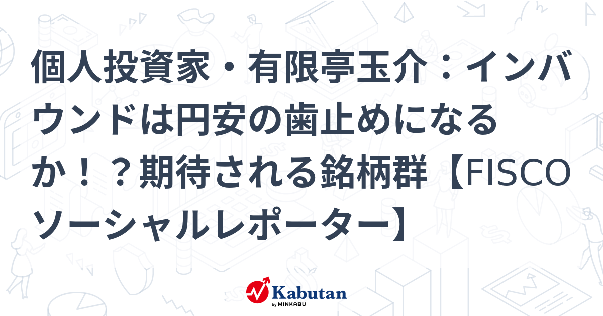 個人投資家・有限亭玉介:インバウンドは円安の歯止めになるか!?期待される銘柄群【FISCO …