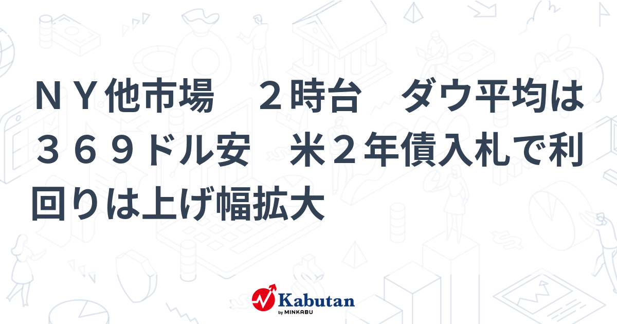 - 【市況】NY他市場 2時台 ダウ平均は369ドル安 米2年債入札で利回りは上げ幅拡大