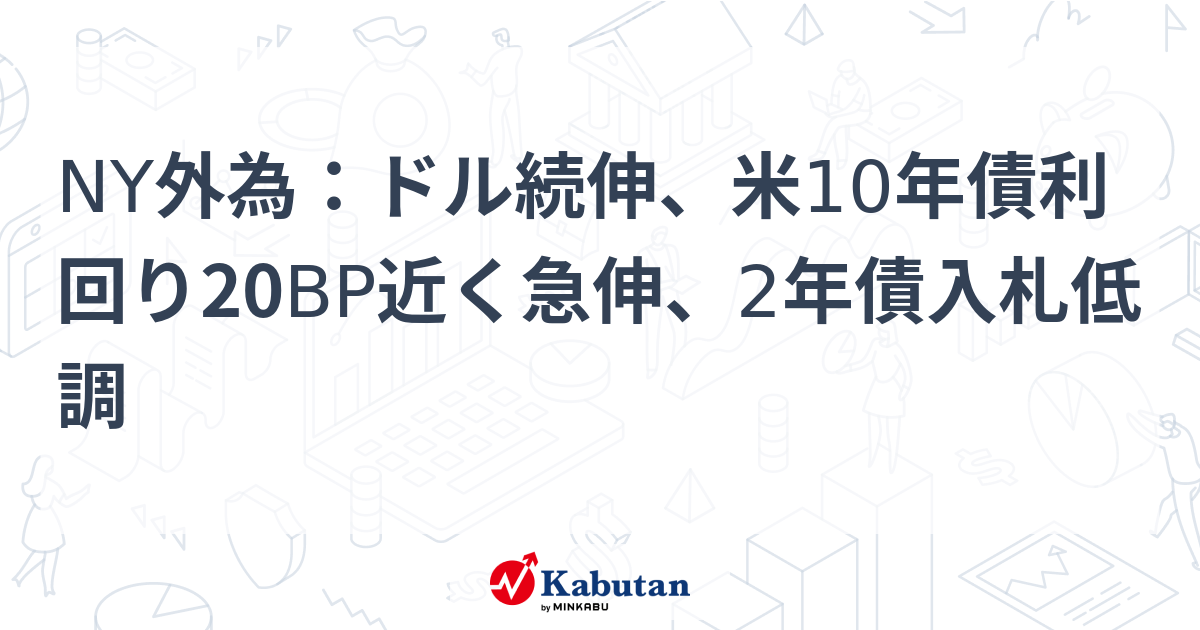 - 【通貨】NY外為:ドル続伸、米10年債利回り20BP近く急伸、2年債入札低調 - 株探
