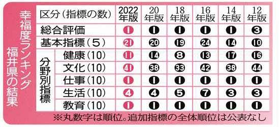福井県幸福度 5回連続1位 22年版ランク:日刊県民福井Web