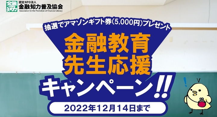 認定NPO法人 金融知力普及協会は、10月5日より、金融教育先生応援キャンペーンを開始した。