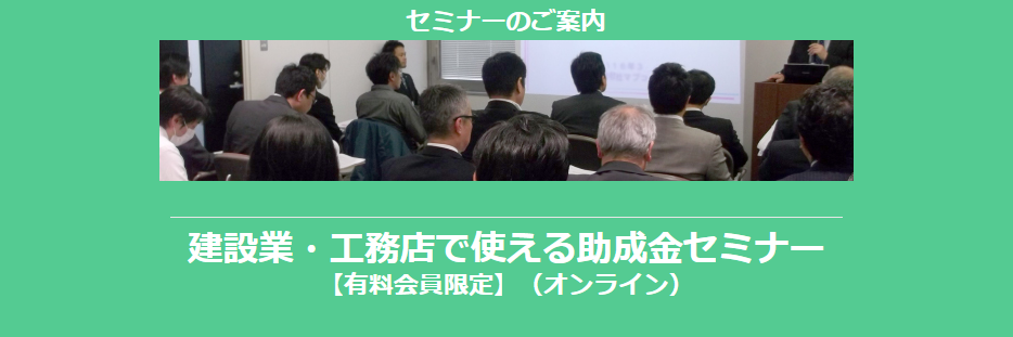 - 【12/6(火)より】建設業・工務店で使える助成金セミナー【有料会員限定】(オンライン)