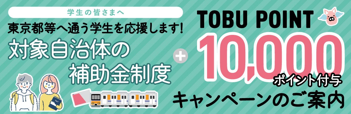 栃木市・館林市の通学定期券購入費補助金制度と連携した「TOBU POINT 10,000pt付与キャンペーン」を実施します!
