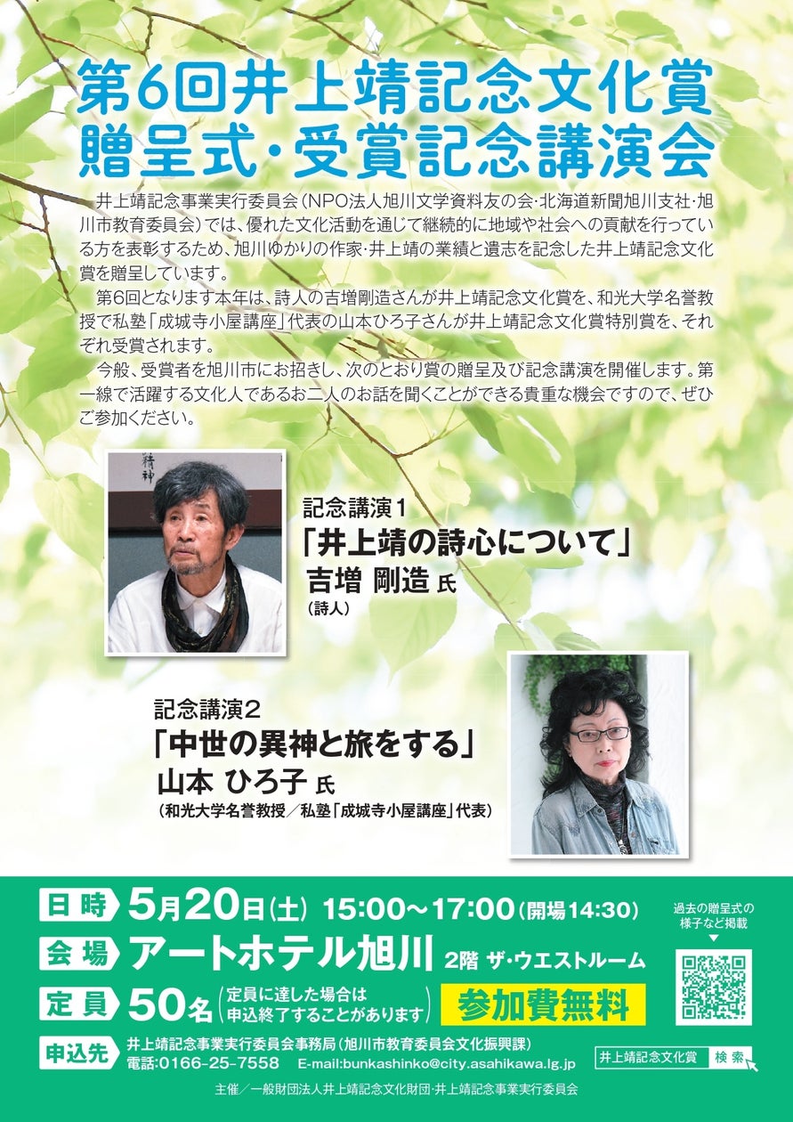 井上靖記念事業実行委員会(NPO法人旭川文学資料友の会・北海道新聞旭川支社・旭川市教育委員会)では、優れた文化活動を通じて継続的に地域や社会への貢献 …