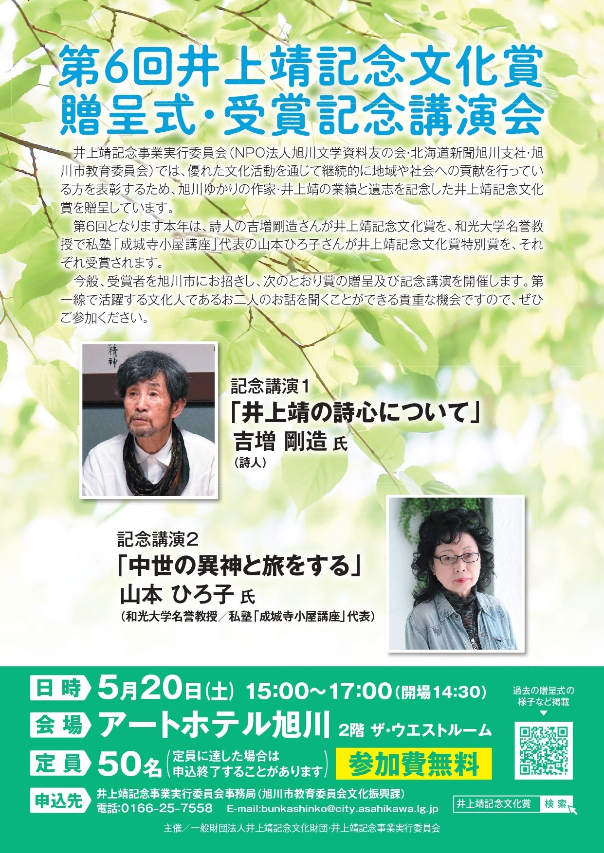 第6回井上靖記念文化賞の贈呈式&記念講演会を開催します。