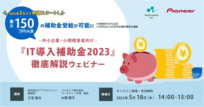 パイオニア株式会社のプレスリリース(2023年5月11日 13時00分)パイオニア株式会社 中小企業・小規模事業者向け[IT導入補助金2023]徹底解説ウェビナーを、5 …