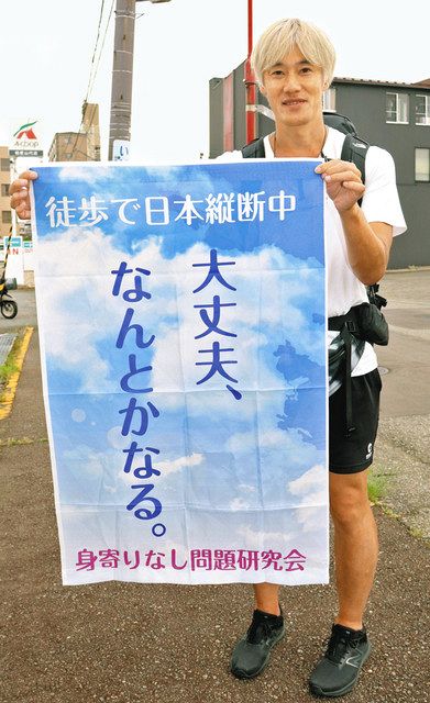 ゴール目指し てくてく NPO代表・須貝さん 日本縦断で県内入り 身寄りなし問題 訴え