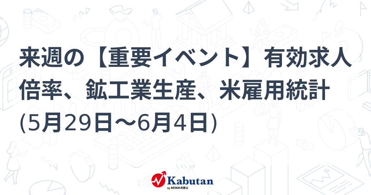 - 【市況】来週の【重要イベント】有効求人倍率、鉱工業生産、米雇用統計 (5月29日~6月4日)