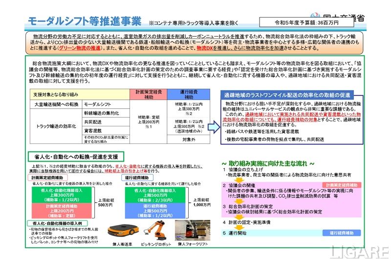- 国交省、令和5年度モーダルシフト等推進事業費補助金の交付決定
