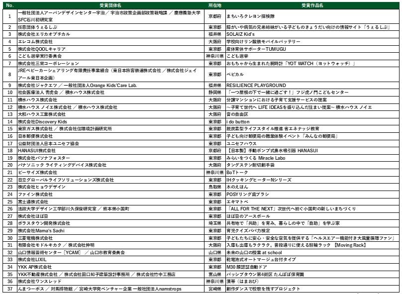「第17回キッズデザイン賞」受賞作品258点の中から選ばれた優秀作品へのノミネート37点を本日 …
