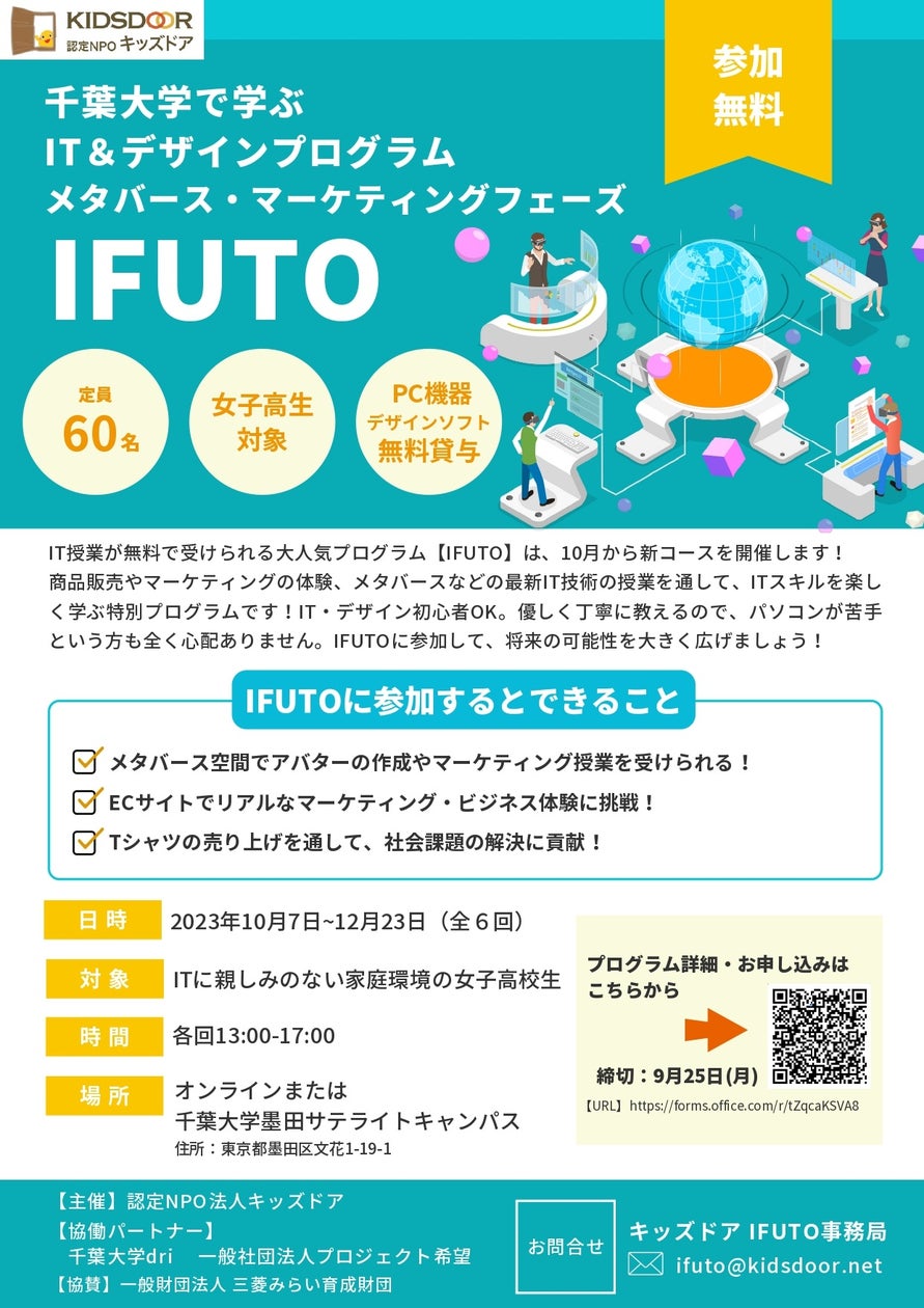 認定NPO法人キッズドアのプレスリリース(2023年9月7日 21時17分)認定NPO法人キッズドア <女子高校生対象>IT&デザインプログラム【IFUTO】の参加者を …