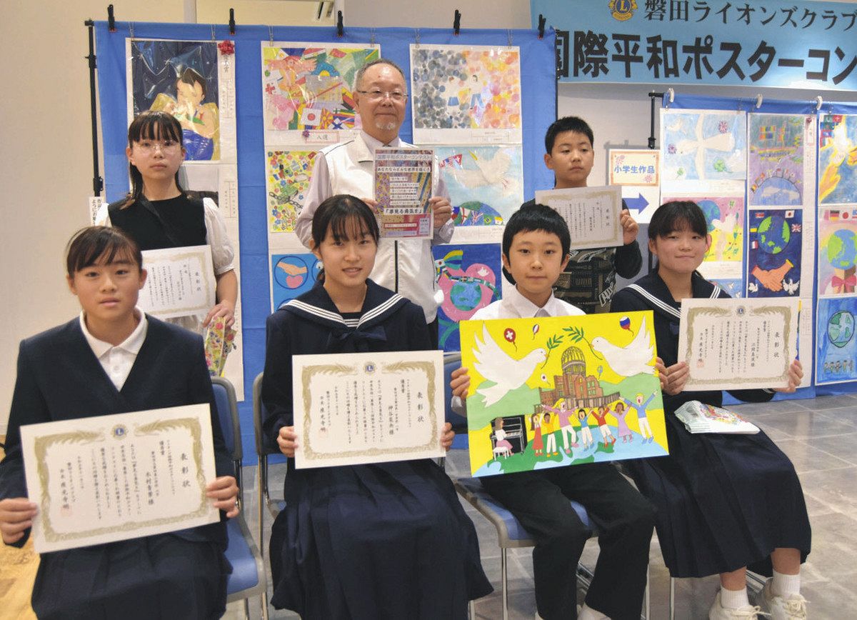 磐田ライオンズクラブ(LC、座光寺明会長)が、磐田市内の小学5年生から中学2年生を対象に募集した「国際平和ポスターコンテスト」の表彰式…