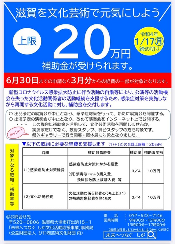 - 令和3年度「未来へつなぐしが文化活動応援事業」補助金の申請受付開始【シェア希望】https:/...