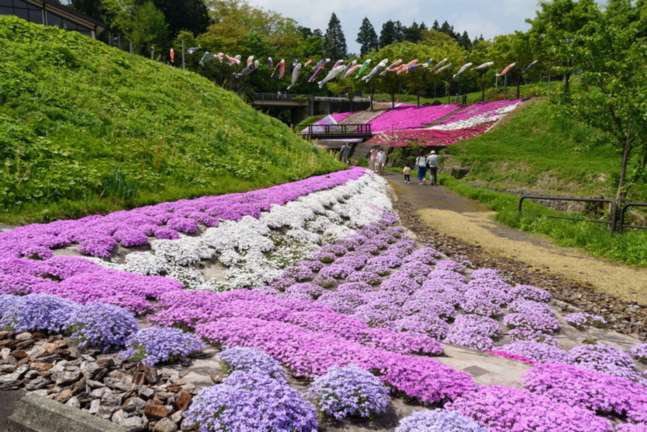 39. 満開のシバザクラ1万株とこいのぼり 板倉区のやすらぎ荘で見頃
