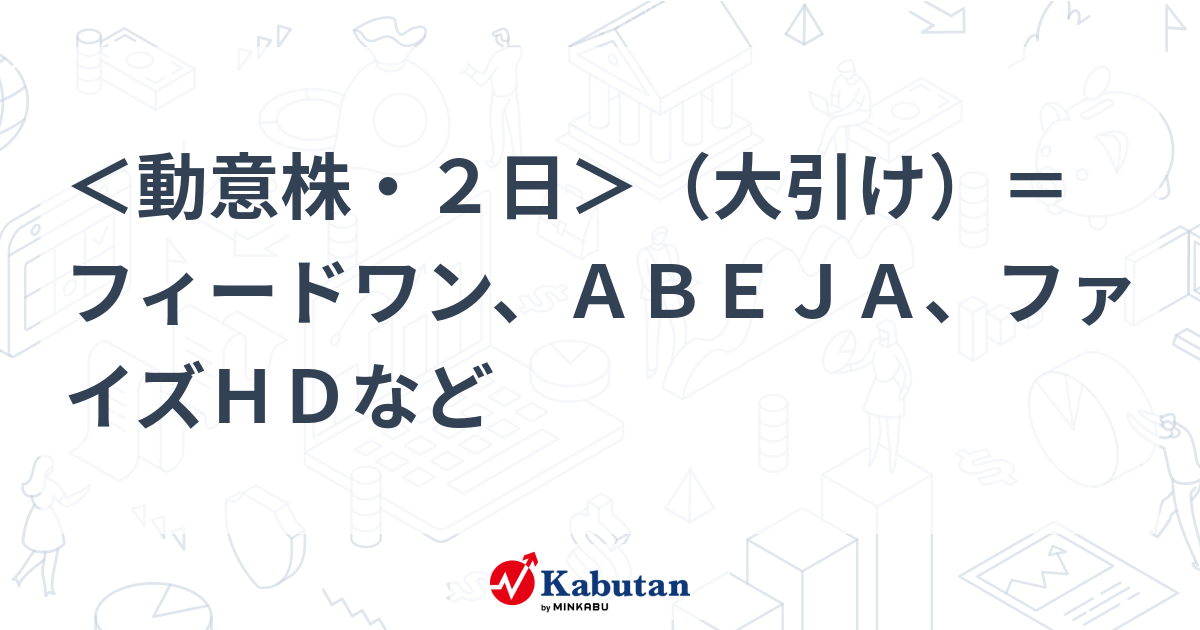 - <動意株・2日>(大引け)=フィードワン、ABEJA、ファイズHDなど - 株探