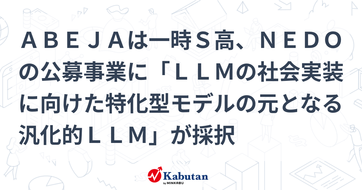 ABEJAは一時S高、NEDOの公募事業に「LLMの社会実装に向けた特化型モデルの元と …