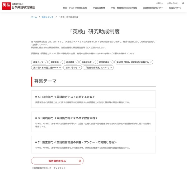 日本英語検定協会は2024年2月1日~4月30日の期間、英検研究助成の応募企画を募集する。企画は3つのテーマで募り、各部門30万円以内で助成金を交付する。