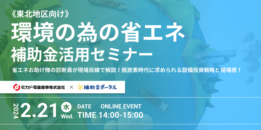 - 2024年2月21日(水)14:00開催|無料ウェビナー環境の為の省エネ×補助金活用セミナー《東北 ...