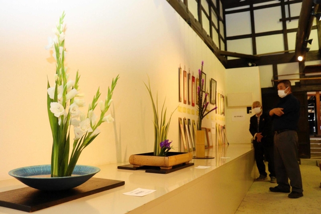 兵庫県新温泉町内で文化活動をする団体や個人の作品を集めた交流展が浜坂先人記念館「以命亭」(同町浜坂)で開かれている。季節の花を使った …