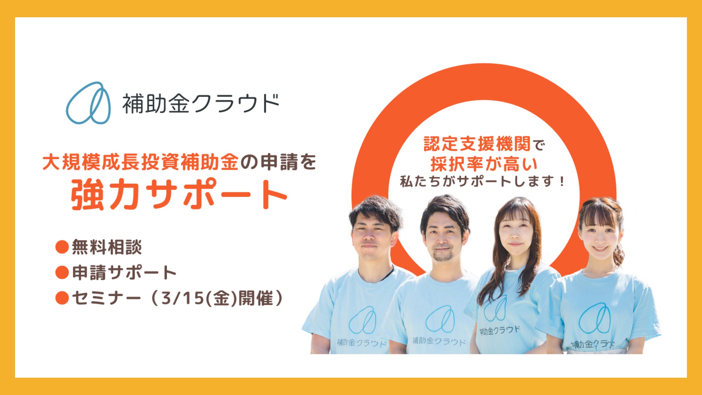 - 補助金クラウド、「大規模成長投資補助金」の申請支援サービスを開始・セミナーで ... - PR TIMES