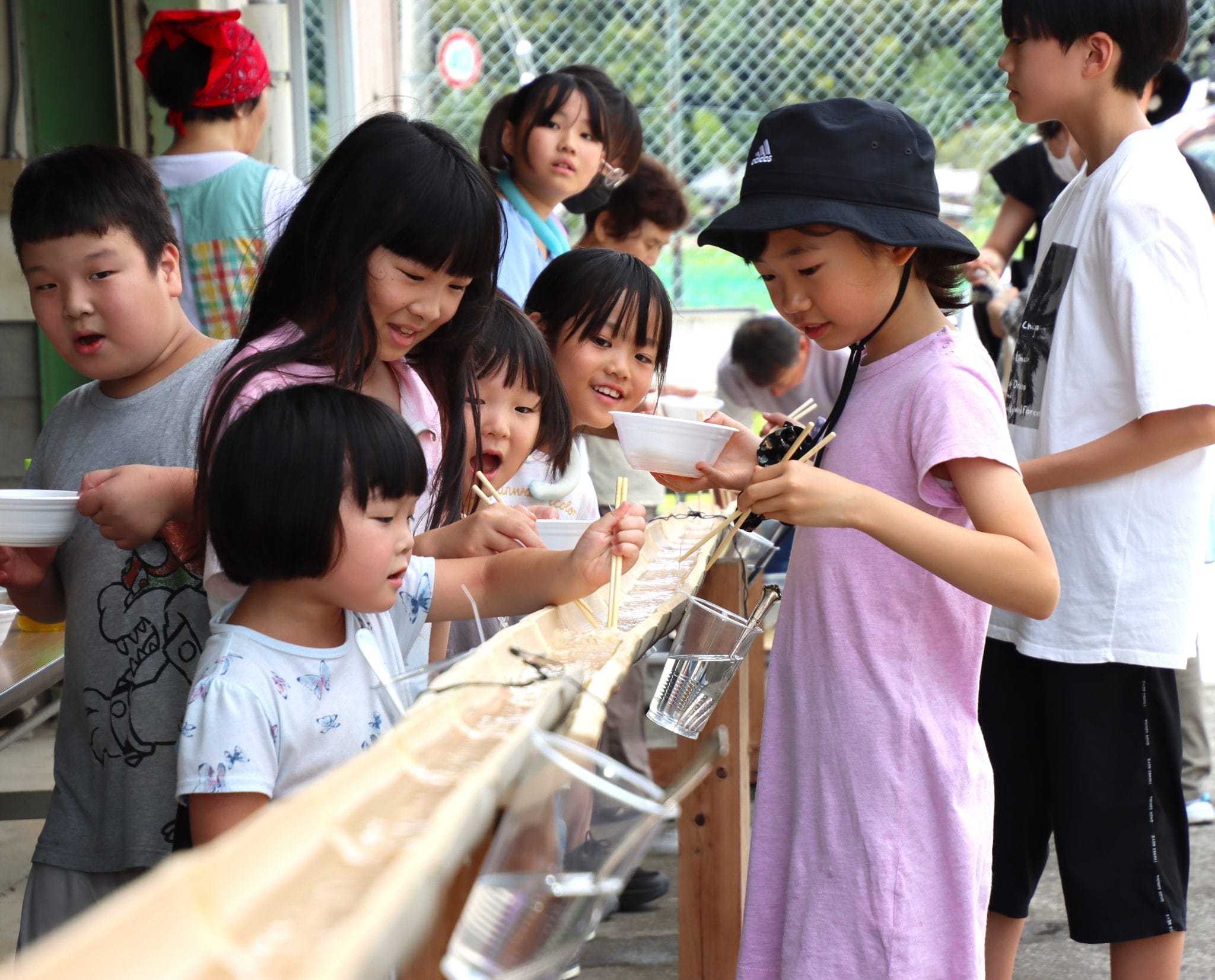 - とれた? 4世代で流しそうめん楽しむ サロンで夏のひと時 - 丹波新聞