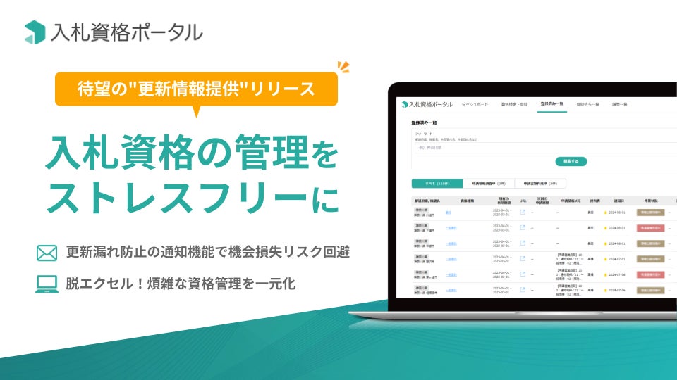 - 取得困難な「入札参加資格の更新申請受付情報」をお知らせ 入札参加機会ロスを防止し