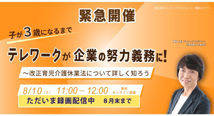【8/31まで録画配信中】テレワークが企業の努力義務に!~改正育児・介護休業法について詳しく知ろう