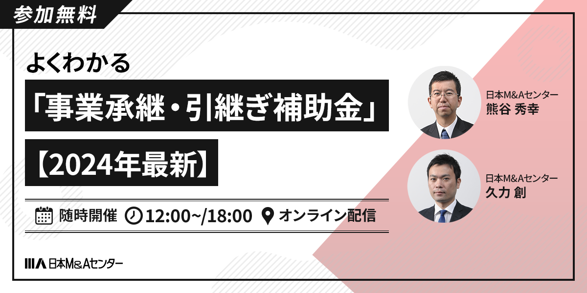 - よくわかる「事業承継・引継ぎ補助金」【2024年最新】|セミナー - 日本M&Aセンター