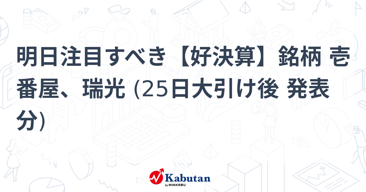 - 明日注目すべき【好決算】銘柄 壱番屋、瑞光 (25日大引け後 発表分)