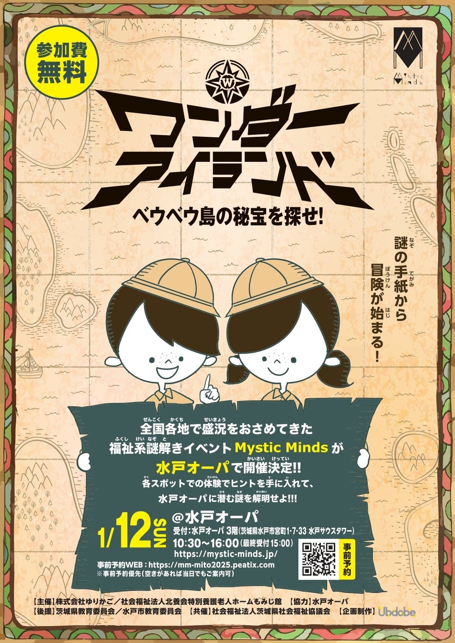 NPO法人Ubdobeのプレスリリース(2024年12月19日 10時10分)遊べて学べて参加無料「福祉」がテーマの謎解きイベント【Mystic Minds】を水戸駅前で開催