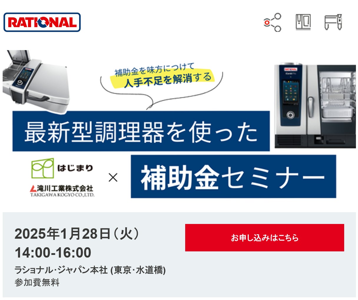- 2025年1月28日(火)ラショナル・ジャパンと最新型調理器を使った補助金セミナー開催いたします