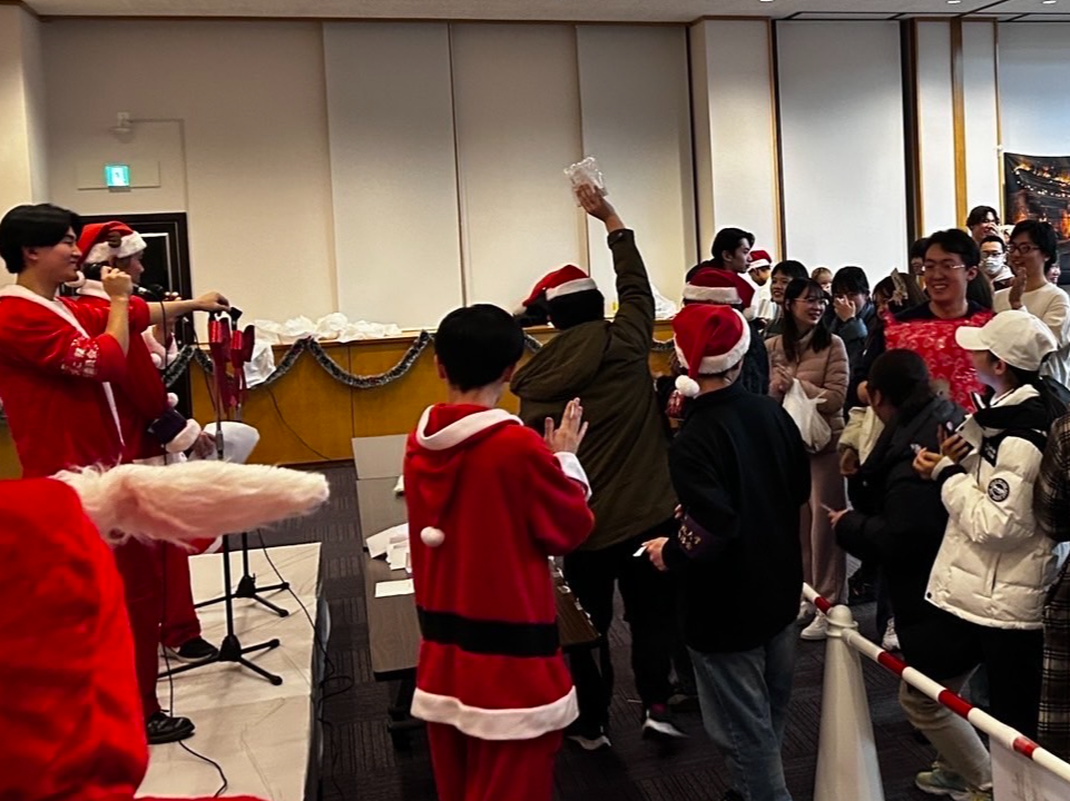 12月17日(火)、学生会館Via3階・レセプションホールにて学生自治会主催のクリスマスパーティーを開催しました。今年度のクリスマスパーティーは、留学生会のパフォーマンス、学生自