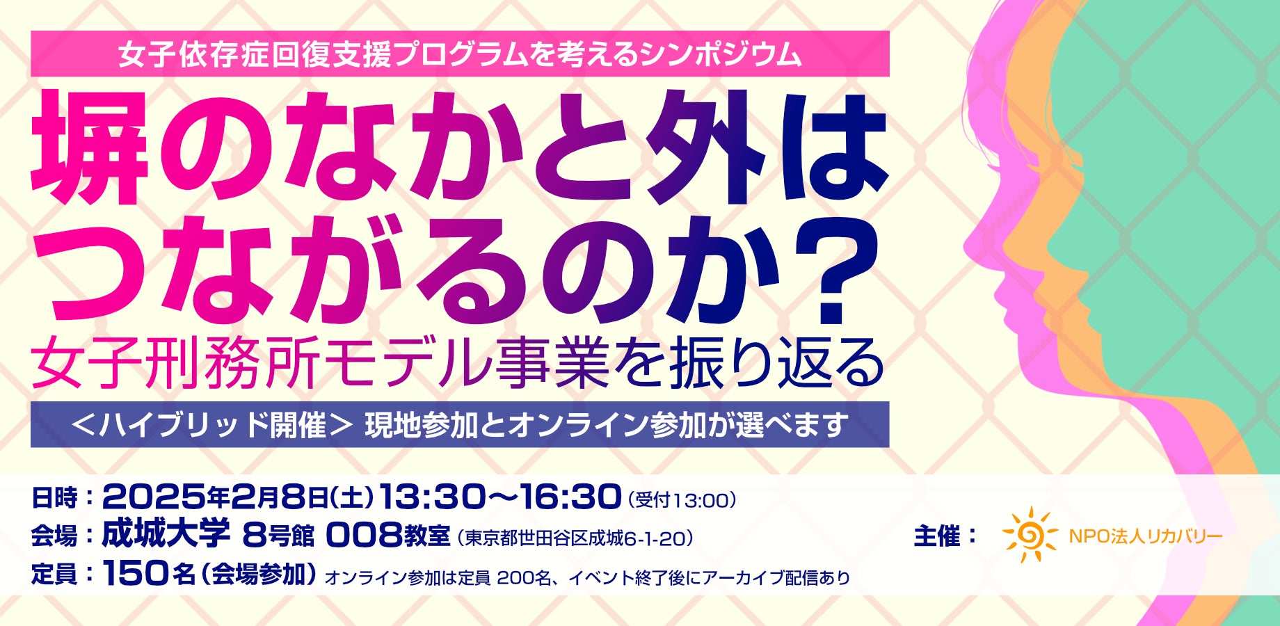 特定非営利活動法人リカバリーのプレスリリース(2025年1月15日 10時30分)法務省「女子依存症回復支援プログラム」を振り返る無料シンポジウム 開催のお知らせ