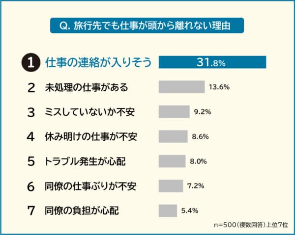 【旅行先でも仕事が頭から離れない理由ランキング】男女500人アンケート調査