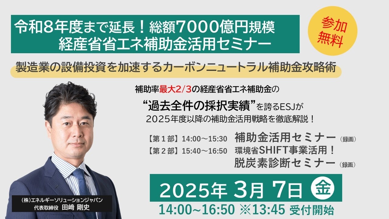 21. プレスリリース:[ESJ]『令和8年度まで延長!総額7000億円規模補助金活用セミナー』製造業 ...